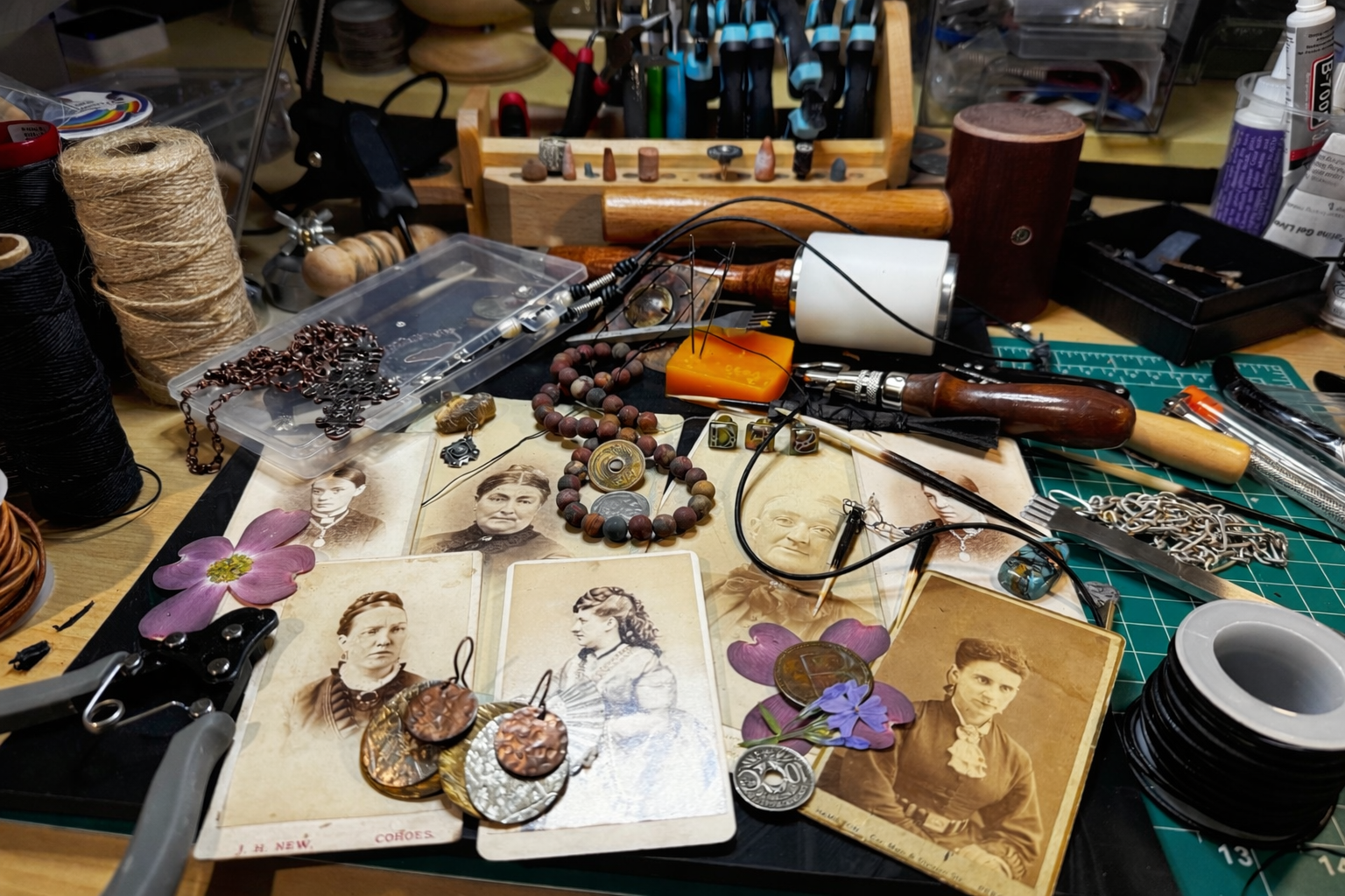 Jewelry, leather, clay, macramé, and found-object work shaped by hand, history, and a love of materials that carry a story, with every piece made with care, character, and deep intention.